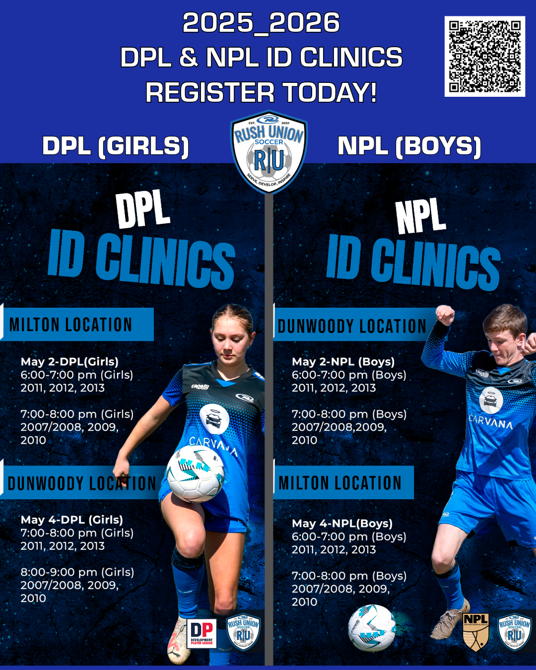 Rush Union will be hosting Development Premier League (DPL) (Girls) and National Premier League (NPL) (Boys) ID Clinics at both of our locations.
